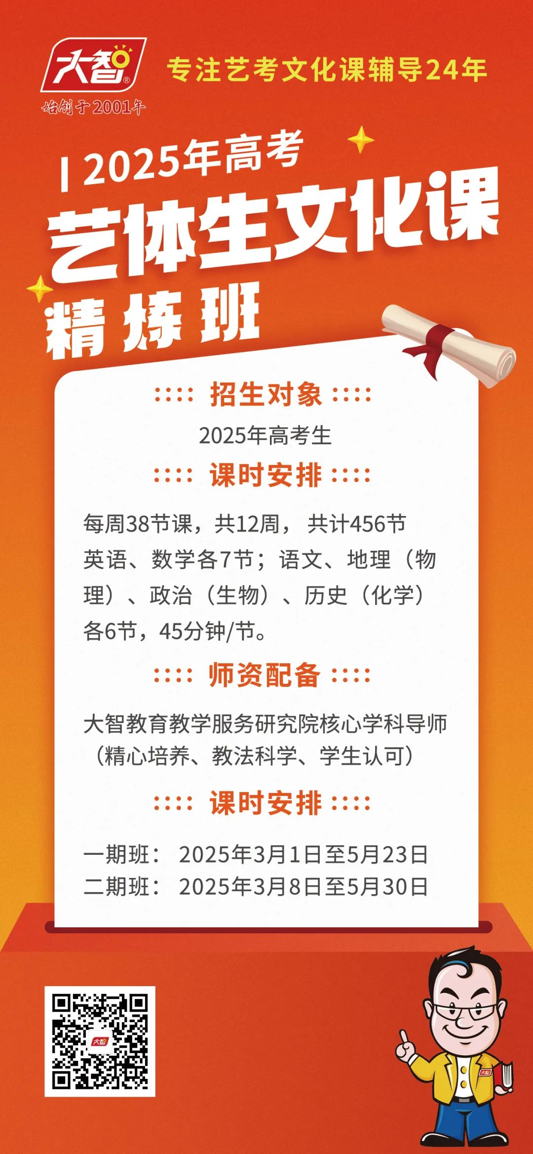 ??立即報名,名額有限,快來加入大智2025藝體生文化課的大家庭,讓我們共同見證你的蛻變與飛躍!??