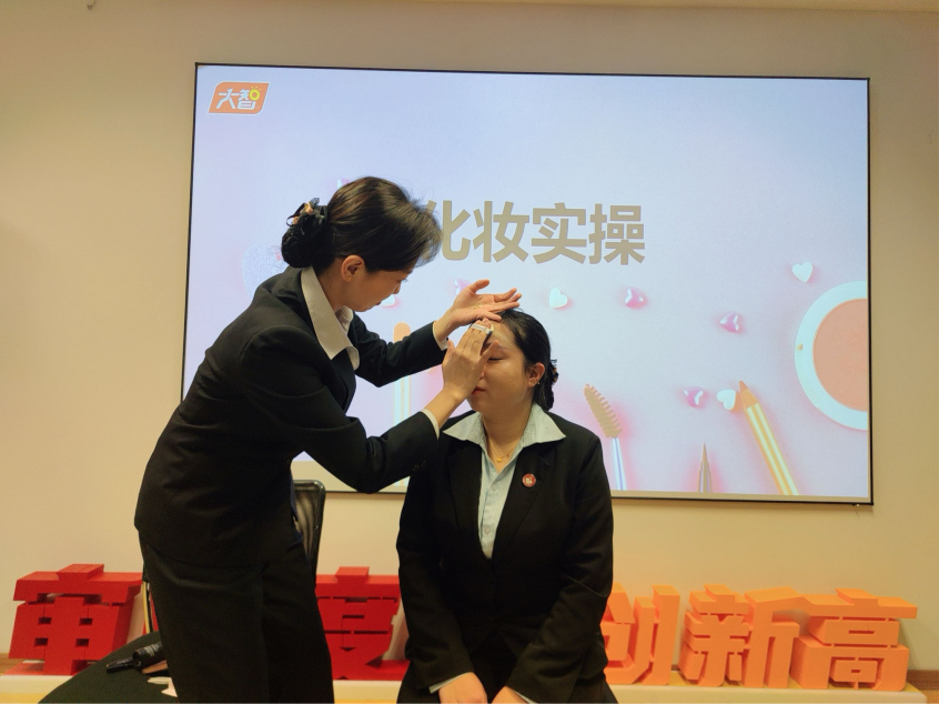 大智控股集團市場部總監(jiān)陳婷婷針對學科導師的職業(yè)特性,傳授了快速高效的日常妝容打造技巧,包括底妝選擇、眼妝自然提亮、唇色搭配等實用知識。婷婷總監(jiān)提到:“化妝不僅是外在美的提升,更是對自我和他人的尊重。作為學科導師,妝容應簡潔大方,既展示專業(yè)性,又拉近與學生的距離。”并現(xiàn)場進行化妝實操。
